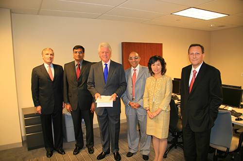 【照片 從左到右:Mr.Raymond G. Chambers (聯合國瘧疾項目特使), Mr.Shah (董事總經理,Calxy),克林頓前總統, Mr. P.Godha (董事總經理,IPCA)林汀(董事總經理,彼迪正天), Dr. Vasella (CEO,諾華)】